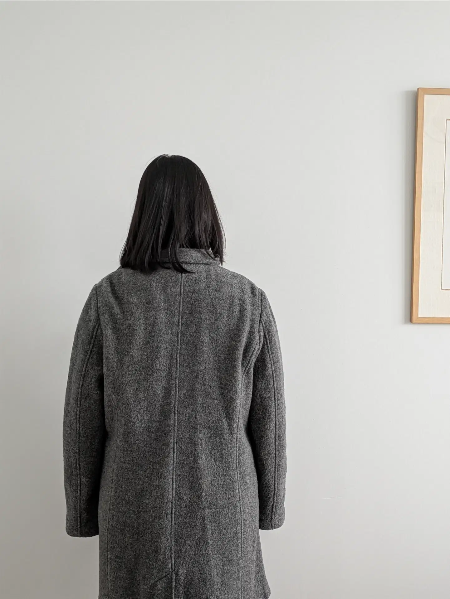 This lightweight, lovely, and well-constructed coat is made of boiled wool sourced from Italy, and was produced from 2014 to 2021 (so not quite vintage, but given its quality, definitely on its way to becoming a sought-after vintage piece in the future). Sure to keep you cozy for many years to come - our model confirms that the coat is indeed extremely insulating!