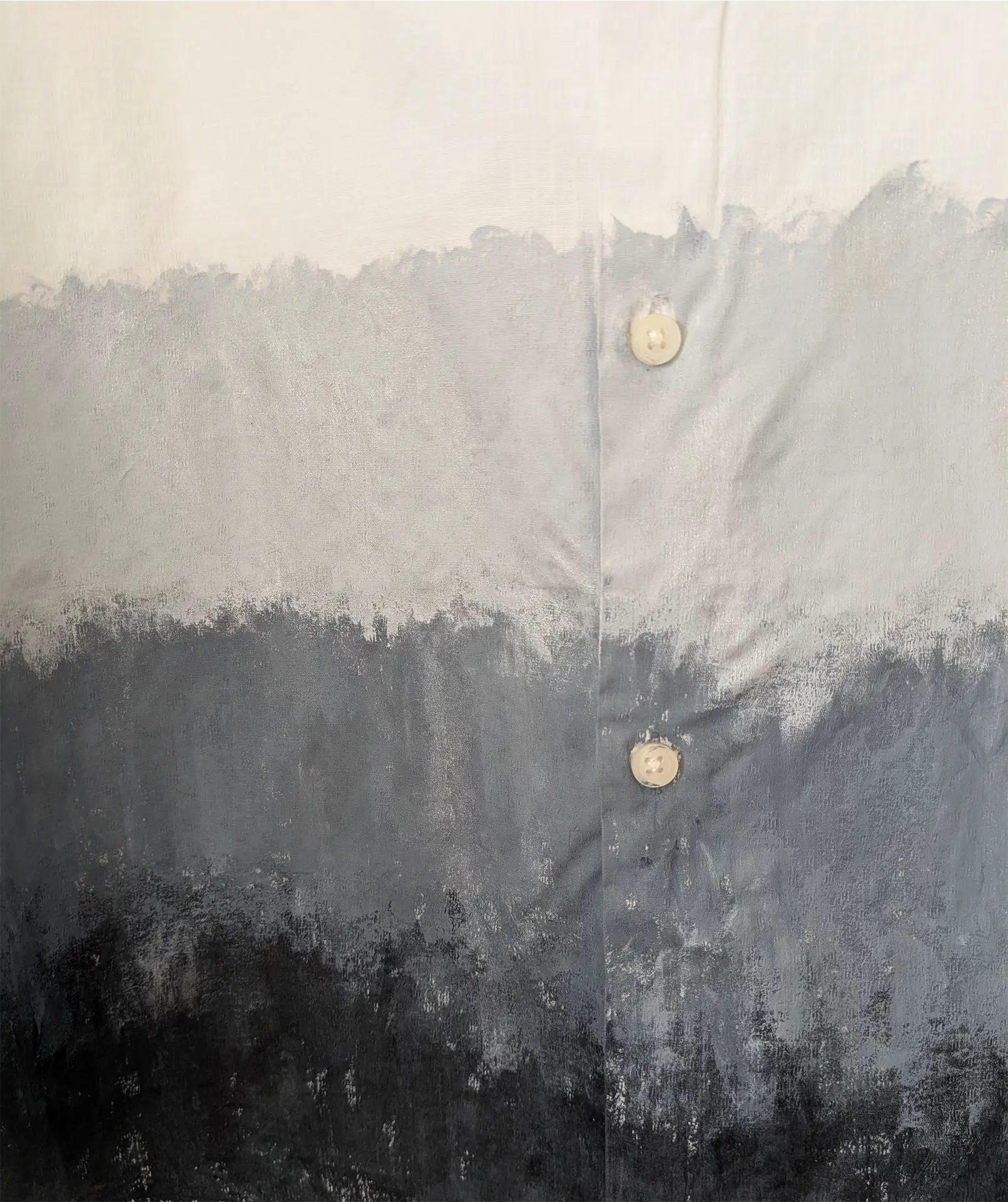 Hand-painted with original art work inspired by a grey, moody skyscape and inspired by Japanese streetwear, it brings just the right amount of drama to your everyday wardrobe. Made from a reclaimed vintage shirt, this piece is not only eye-catching, it's sustainable—so you can look good and feel good.