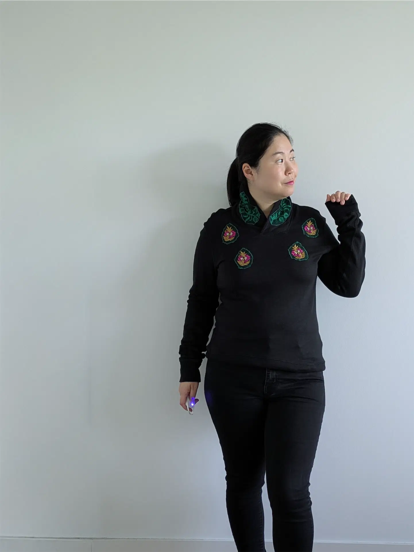 Embrace eco-friendly fashion with our upcycled unisex sweatshirt, featuring appliqués from stunning reclaimed sari.
