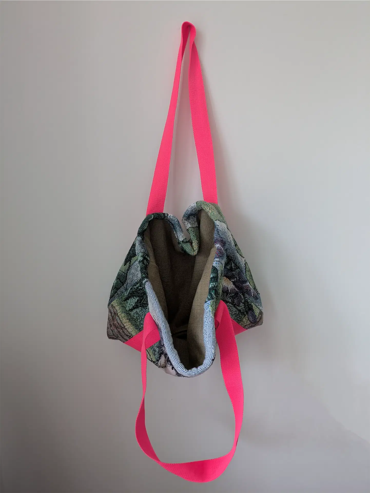 This one-of-a-kind upcycled tote bag is bursting with personality, featuring fun and funky illustrations of a cat and flowers, plus hot pink cotton canvas straps that bring the sass. It's giving cool, creative, cat-obsessed energy — and we are so here for it.