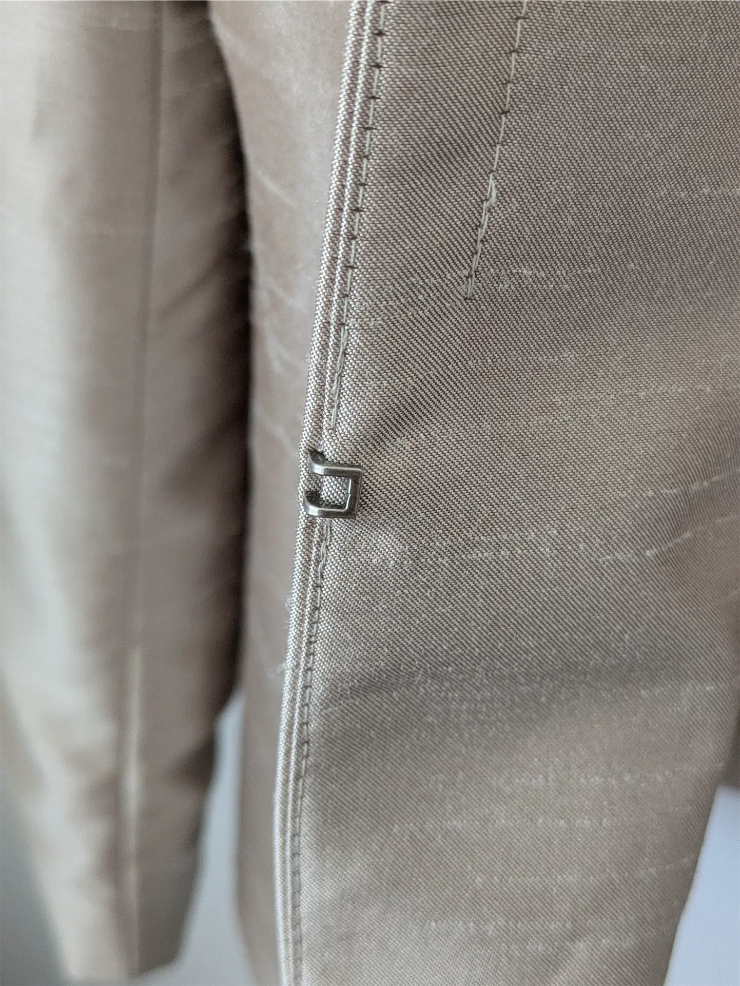 Step into effortless elegance with this stunning 1980s vintage blazer from Tahari. Perfect as a bridal jacket, or for mother of bride, mother of the groom, or the matron of honor, this jacket exudes timeless sophistication. Not in a wedding party anytime soon? Dress it up as part of formal dress, old money look, or to channel the light academia. Or throw it over jeans and t-shirt as a casual fall / spring jacket. The shiny pearl exterior gives a touch of sophistication to any fall style outfit, and the classic shoulder pads will give your confidence a boost! Stand out with this timeless vintage jacket!