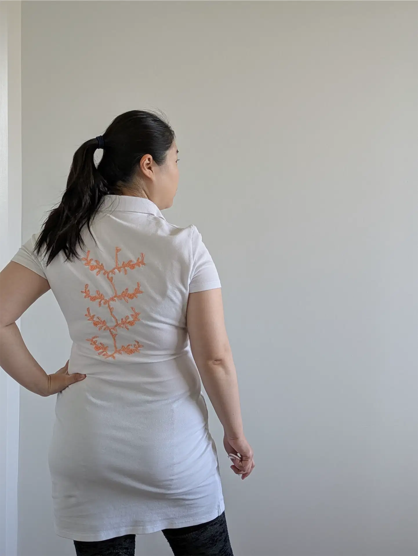 Designed with a body-conscious, sporty fit, this shirt dress comfortably hugs your shape. And don’t miss the details: the embroidery flows across the front and the back, giving you gorgeous accents from every angle.